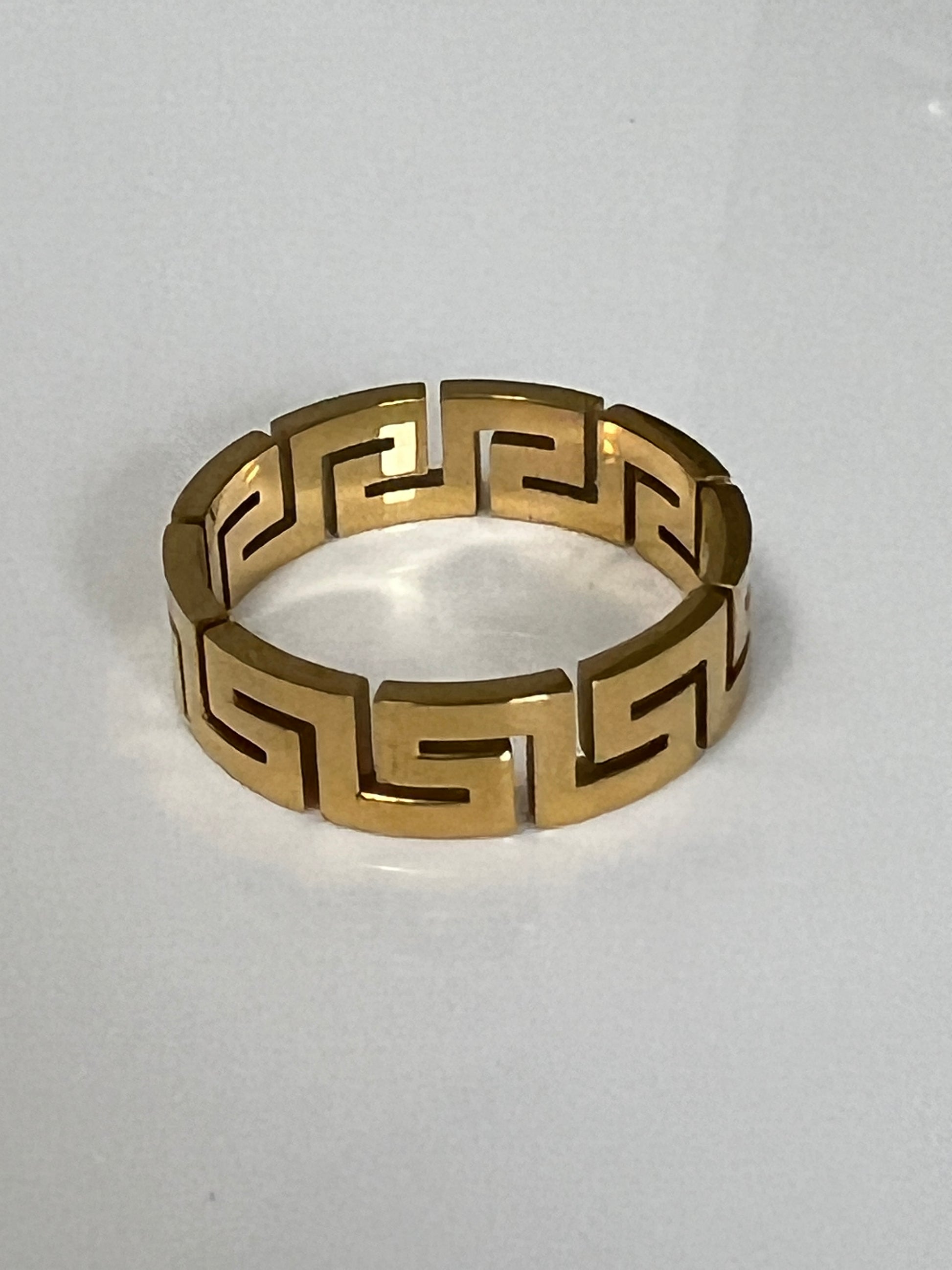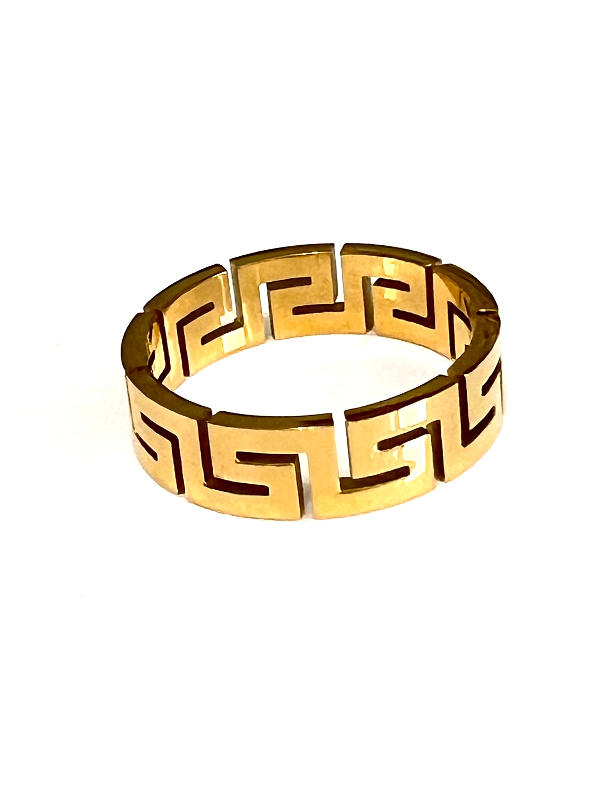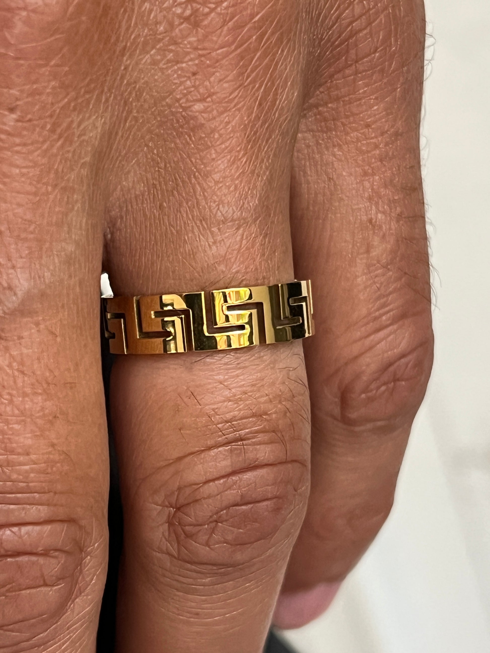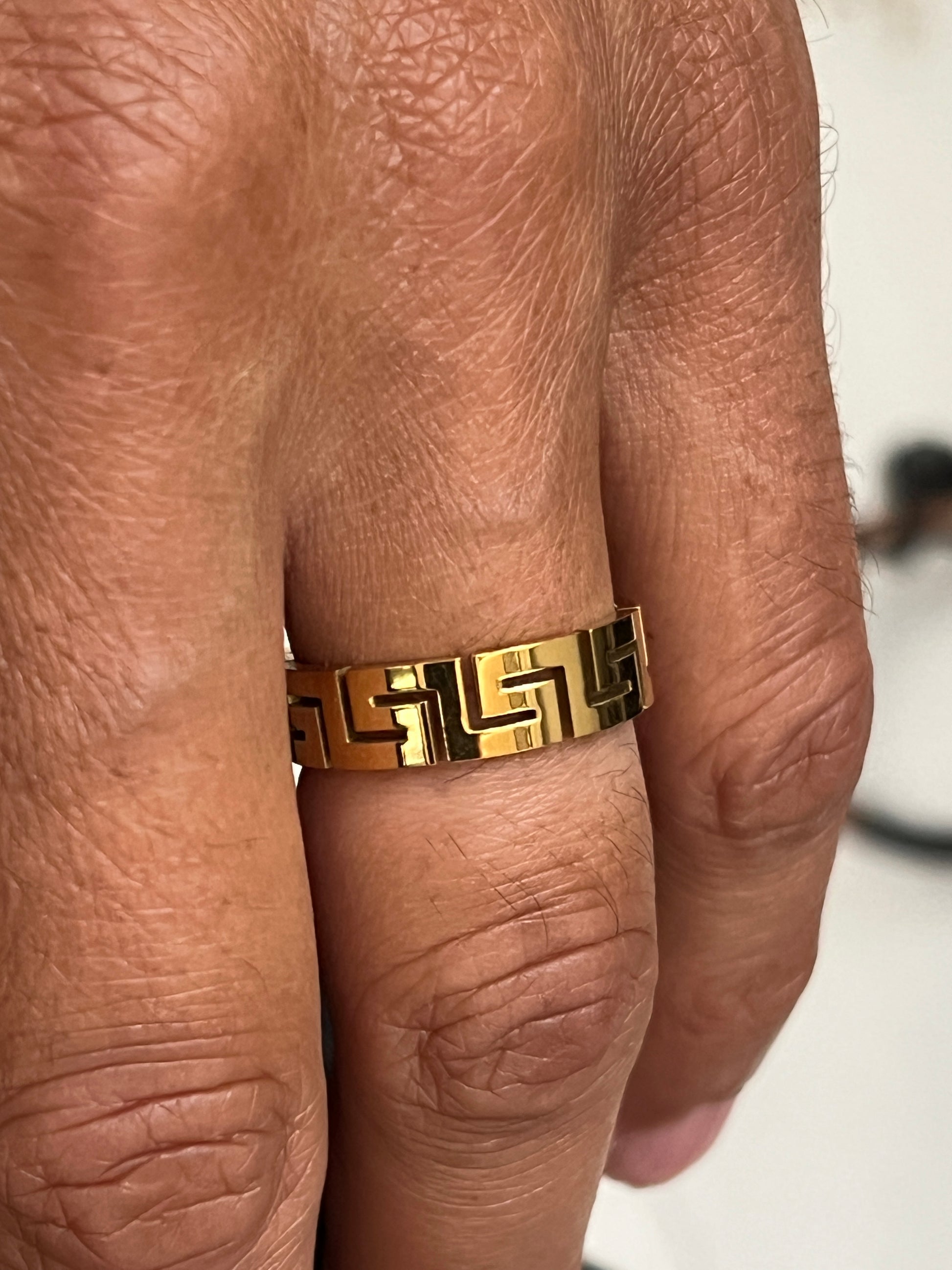 Unisex 6mm Greek Key Ring – PVD Gold or Silver Band, Timeless Durable Wedding & Daily Wear Jewelry