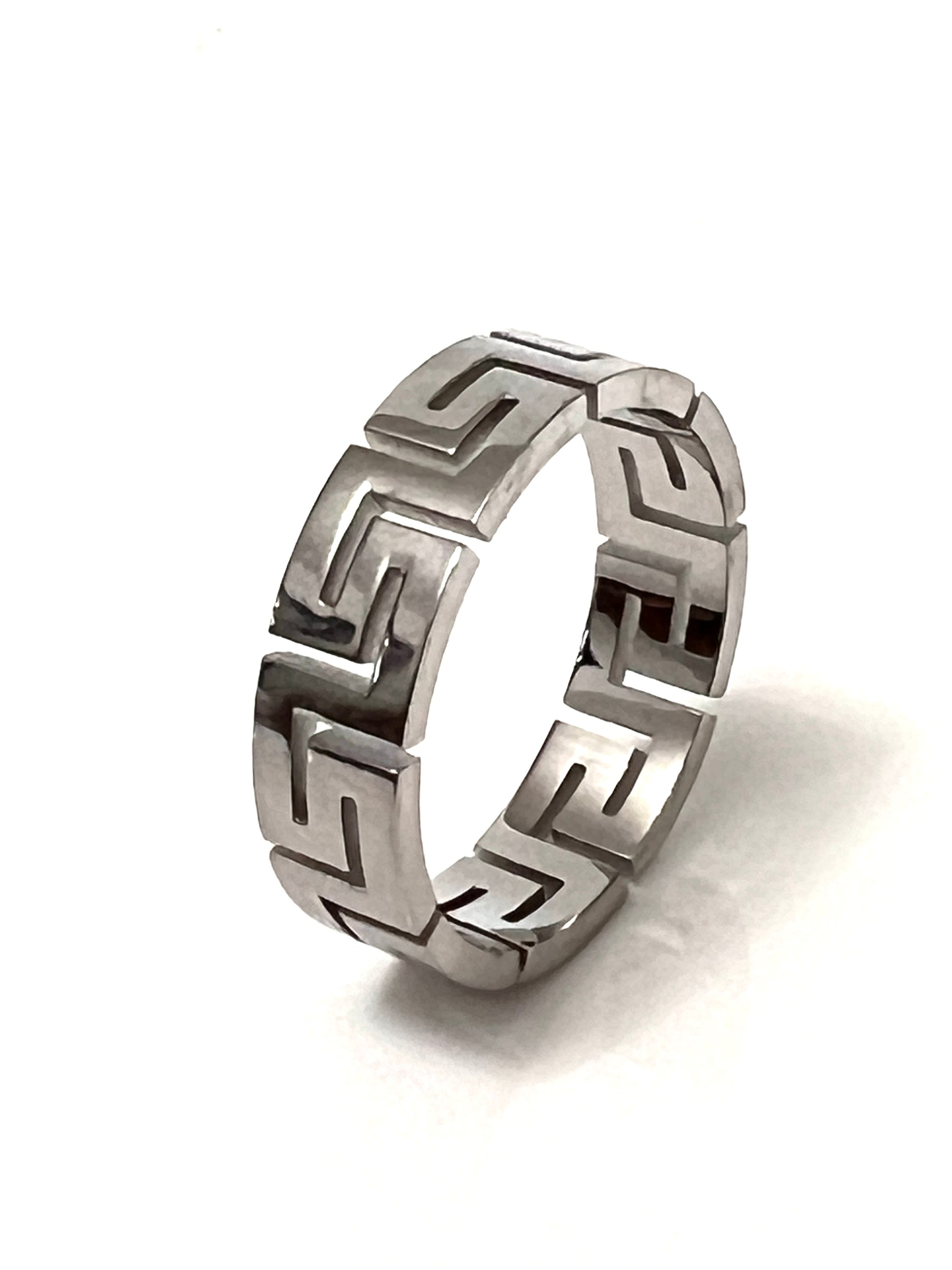 Classic Greek Key design etched on a sleek 6mm band for subtle yet striking style
