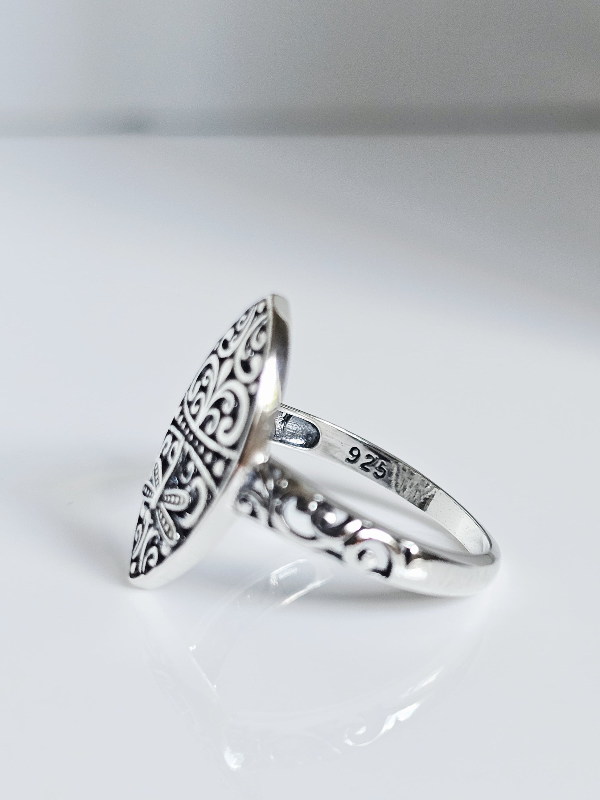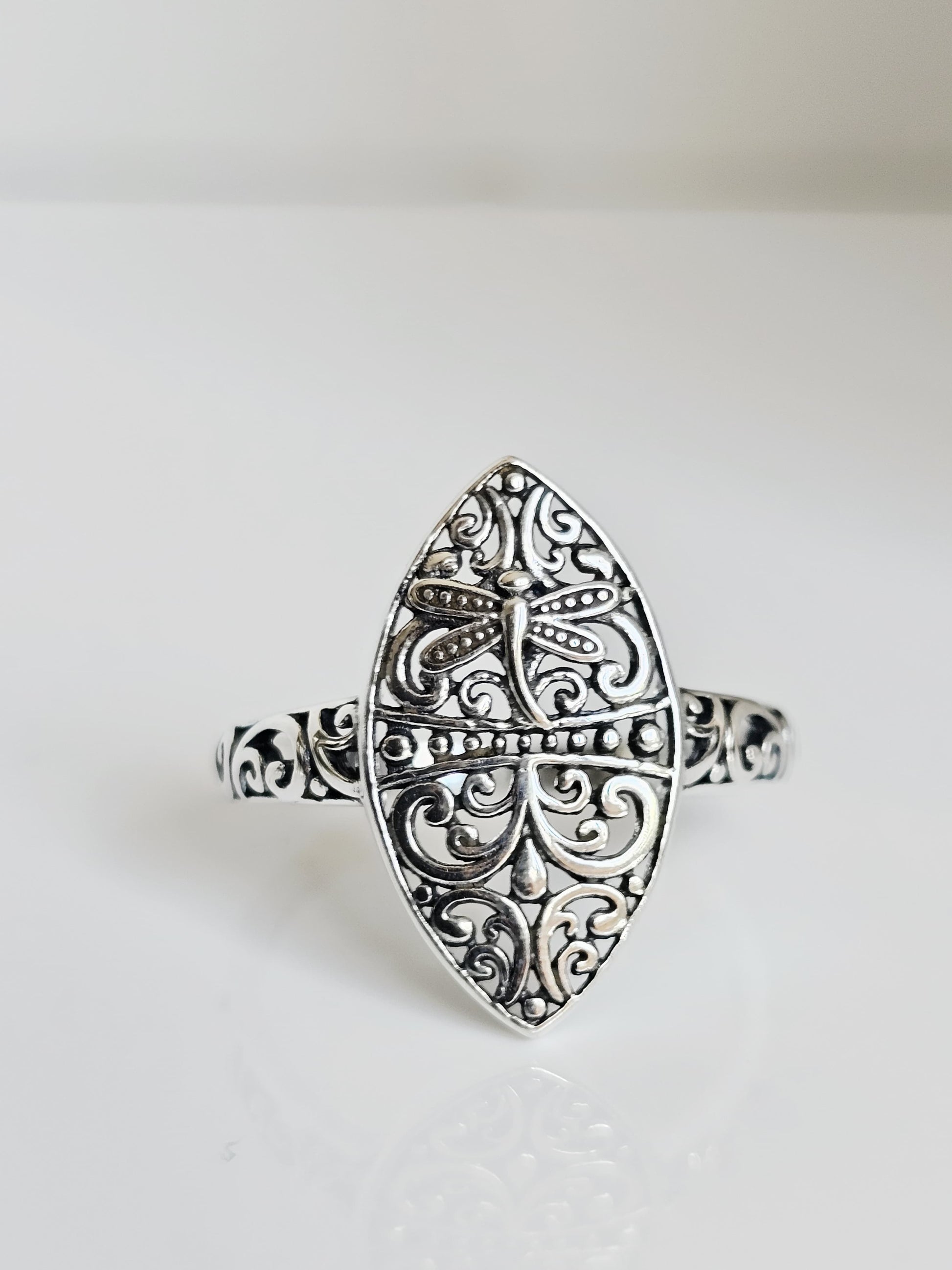 Sterling Silver Dragonfly Vine Marquise Ring – A Symbol of Renewal and Grace