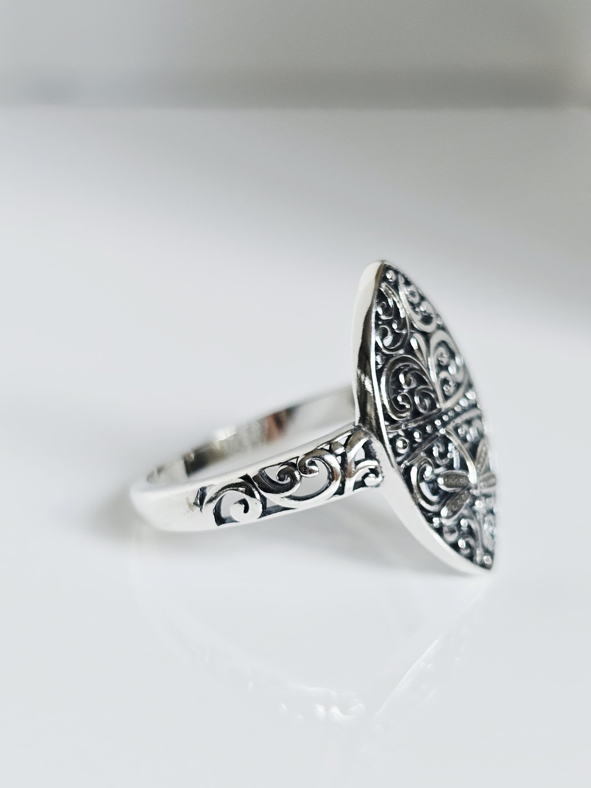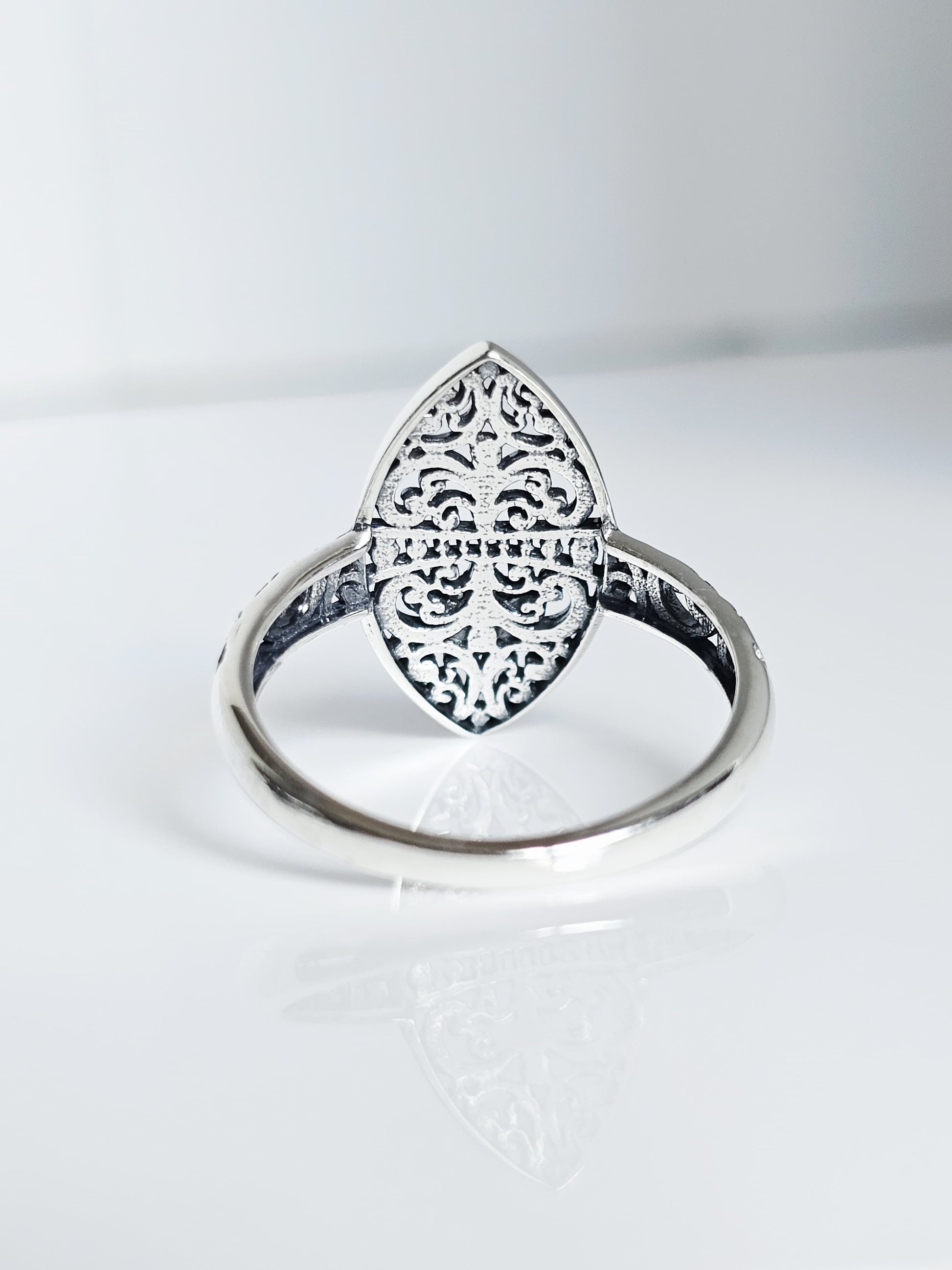 Sterling Silver Dragonfly Ring | 925 Vine Marquise Ring | Oxidized Silver Nature Jewelry | Minimalist Non-Tarnish Ring for Women