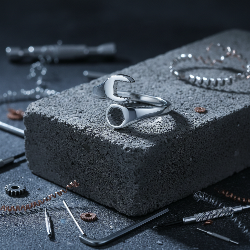 Whether you're a mechanic, a tradesperson, or simply someone who admires a rugged, industrial aesthetic, this ring is a perfect fit. The wrench-inspired design adds a creative touch to your everyday wear, while offering a meaningful symbol of hard work and skill.