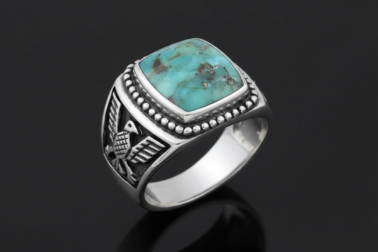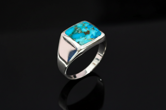 Turquoise Men's Ring, Sterling Silver Ring, 925 Stamped Ring, Signet Men's Band, Genuine Turquoise Stone for men